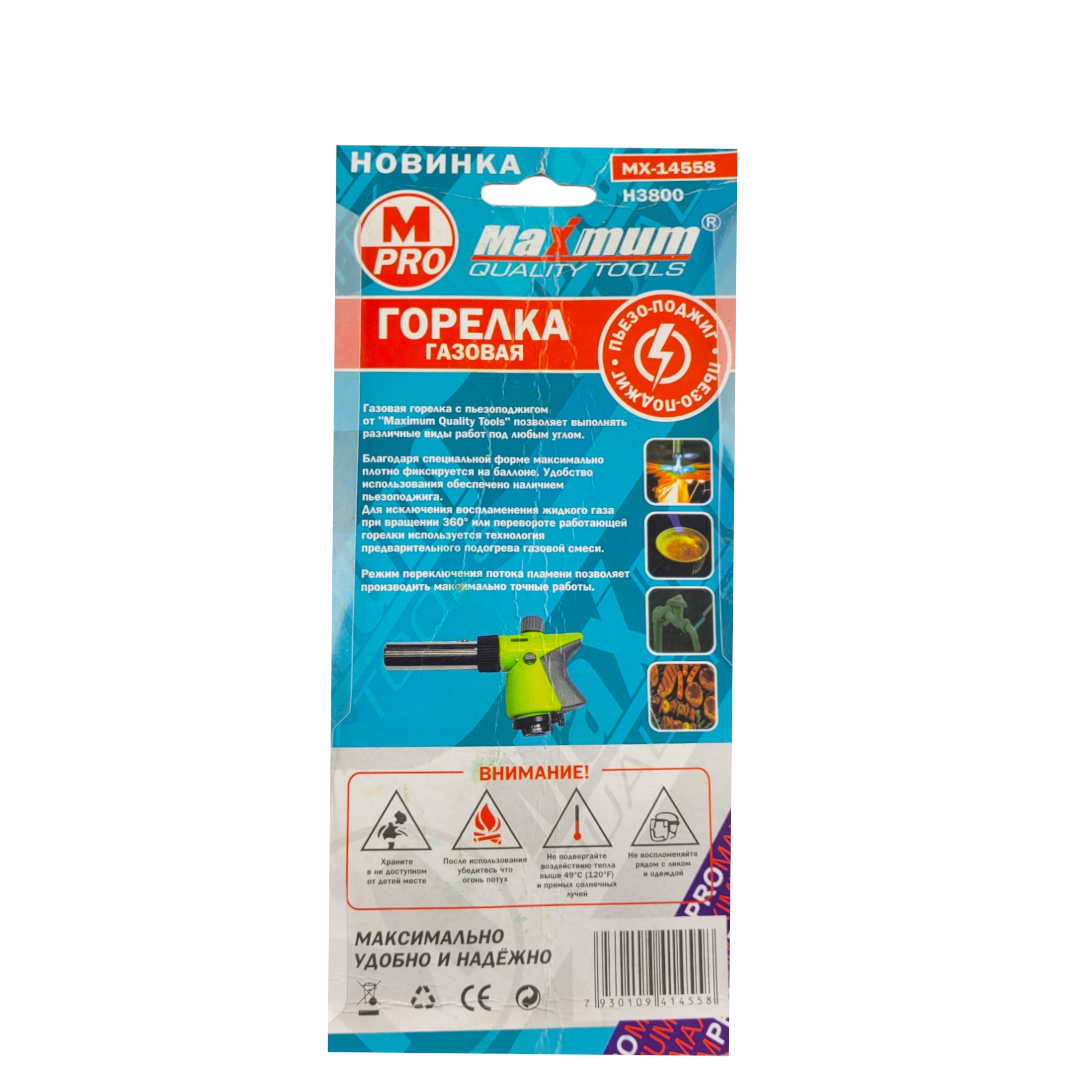 Горелка газовая 360 с пьезоподжигом и регулировкой силы пламени от "MAXIMUM QUALITY TOOLS" позволяет выполнять различные виды работ в самых экстремальных условиях. Работа возможна в любом положении на 360 градусов и при любых погодных условиях. Благодаря специальной форме горелка максимально плотно фиксируется на баллоне и при непрерывном пламени допустимая температура достигает до 1300 градусов Цельсия. Удобство использования обеспечено наличием пьезоподжига. Для исключения воспламенения жидкого газа при вращении или перевороте работающей горелки используется технология предварительного подогрева газовой смеси. Сопло выполнено из алюминиевого сплава и выдерживает высокие температуры.