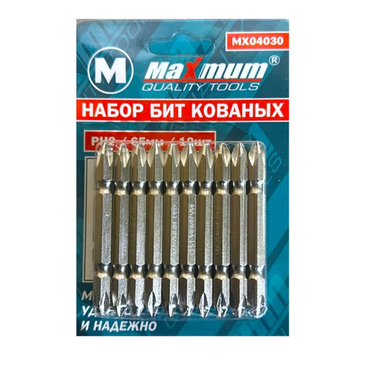 Набор двухсторонних бит для заворачивания PH2 65 мм от "Maximum Quality Tools" включает в себя 10 насадок изготовленых из высокопрочной легированной стали S2.